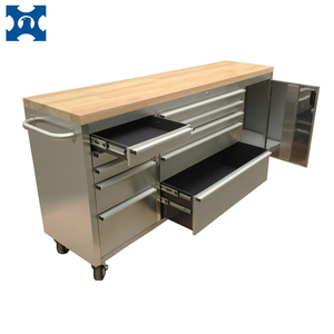 72" tool chest with wooden top Model: HTC7215W Spec: •430 stainless steel with Anti-fingerprinting • Double wall construction • Rubber wood top •Including 1 5 drawers •Drawers with Alu. Handles •Drawer liners included •Full extension ball bearing drawer slide •For drawer: 430 stainless Steel exterior and black power coated steel interior •2 heavy duty stainless steel side handles • 6inch x 2 inch heavy casters: 2 pcs casters and 2 pcs casters with brakes It can be loading more 300kg each Measure: Product Dimension : 72.15”W x18.11”Dx 37.54”H/ 1832mmW*460mmD*953mmH Package Dimension : 75inchWx 21½” D x 41”H/ 1905mmW*546mmD*1041mmH Container load (20GP/40foot/40HQ ): 24sets/48sets/ 72sets More Details for 72" tool cabinet: